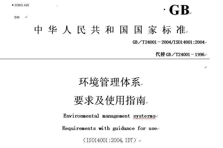 本標準是GB/T24000系列中的一項標準。本標準等同采用ISO14001:2004《環(huán)境管理體系要求及使用指南》本標準代替GB/T24001-1996。本標準與GB/T240...